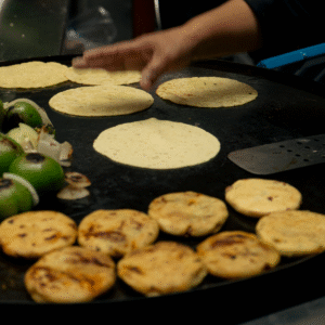 Si vienes caminando, déjate guiar por el olor del maÃz caliente y la música que se escapa por la puerta.